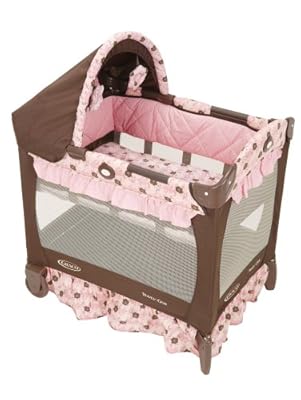 Whether you're off to Grandma's or the Grand Canyon, this lightweight travel crib has all the comforts your baby needs to sleep like, well, a baby. There's a full-size bassinet with quilted bumpers and a comfy quilted mattress. The canopy shields baby from light and from you, when you're sharing a room. There are removable, soft toys on the canopy for away-from-home amusement. With ruffles and compact design, it looks so good the grandparents won't mind frequent sleepovers. Under 20 pounds and 20% smaller than traditional Pack 'N Play Playards, this space-saver even fits in tiny hotel rooms and folds small, so there are few places it and your baby won't feel welcome.