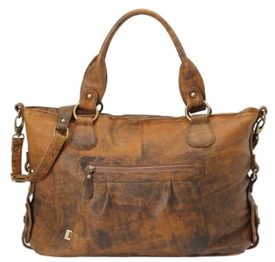Distressed jungle lamb leather . Zip top closure . Fixed stroller straps . Double handle and detachable adjustable web shoulder strap . 1 year manufacturing defect .